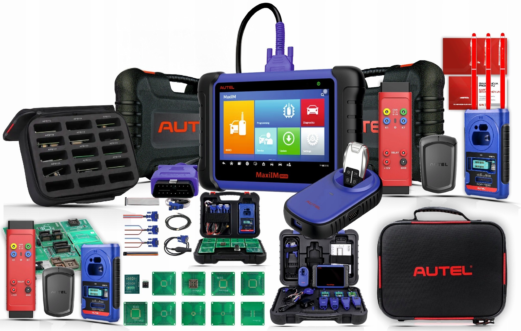 MaxiIM IM508S to szybkie, łatwe w obsłudze i ultra przenośne urządzenie do obsługi immobilizera i programowania kluczy. Tablet z ekranem dotykowym oraz systemem Android posiada mocny czterordzeniowy procesor a także intuicyjny i prosty interfejs. Wyposażony w programator kluczy XP200, dodatkowo w zestawie programator XP400PRO, APB112, GBOX2 oraz IMPKA. IM508S jest w stanie zapewnić nadzwyczajne funkcje serwisowe dla systemu immobilizera. Oprócz możliwości szybkiego diagnozowania wielu modułów większości marek i modeli na rynku, IM508S zapewnia doskonałe funkcje specjalne. Aplikacja urządzenia posiada język polski.